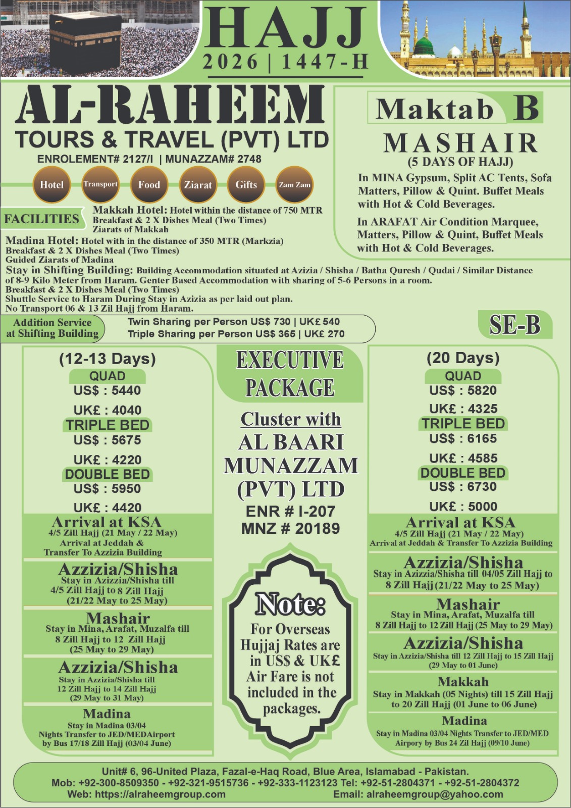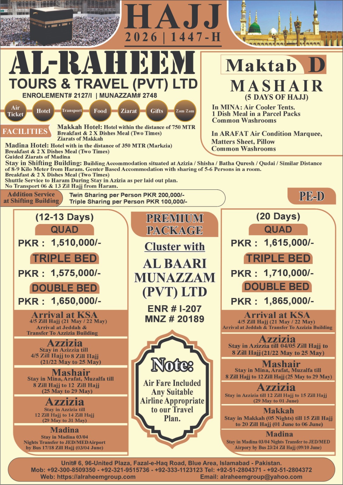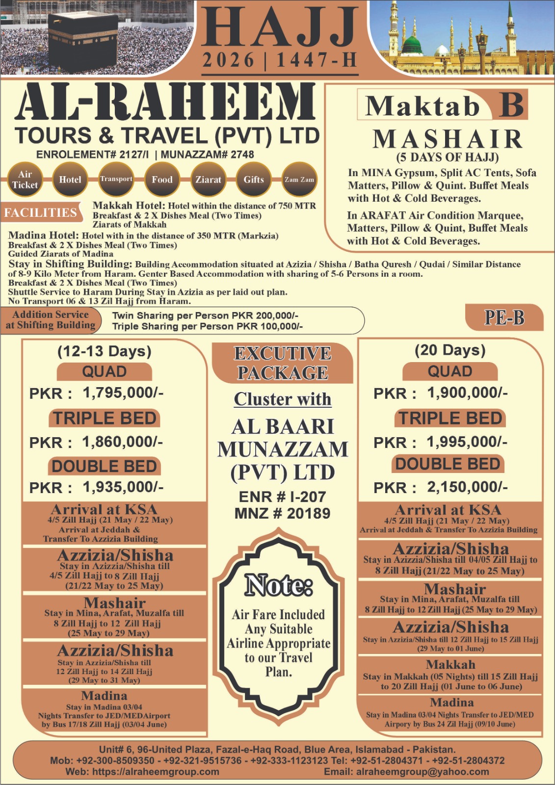 Al Raheem Tours & Travels PVT LTD Best Hajj & Umrah Packages
