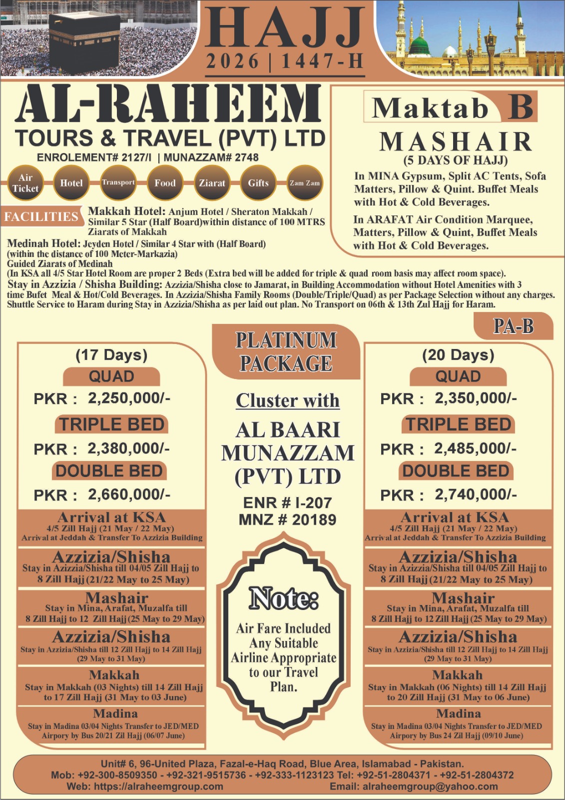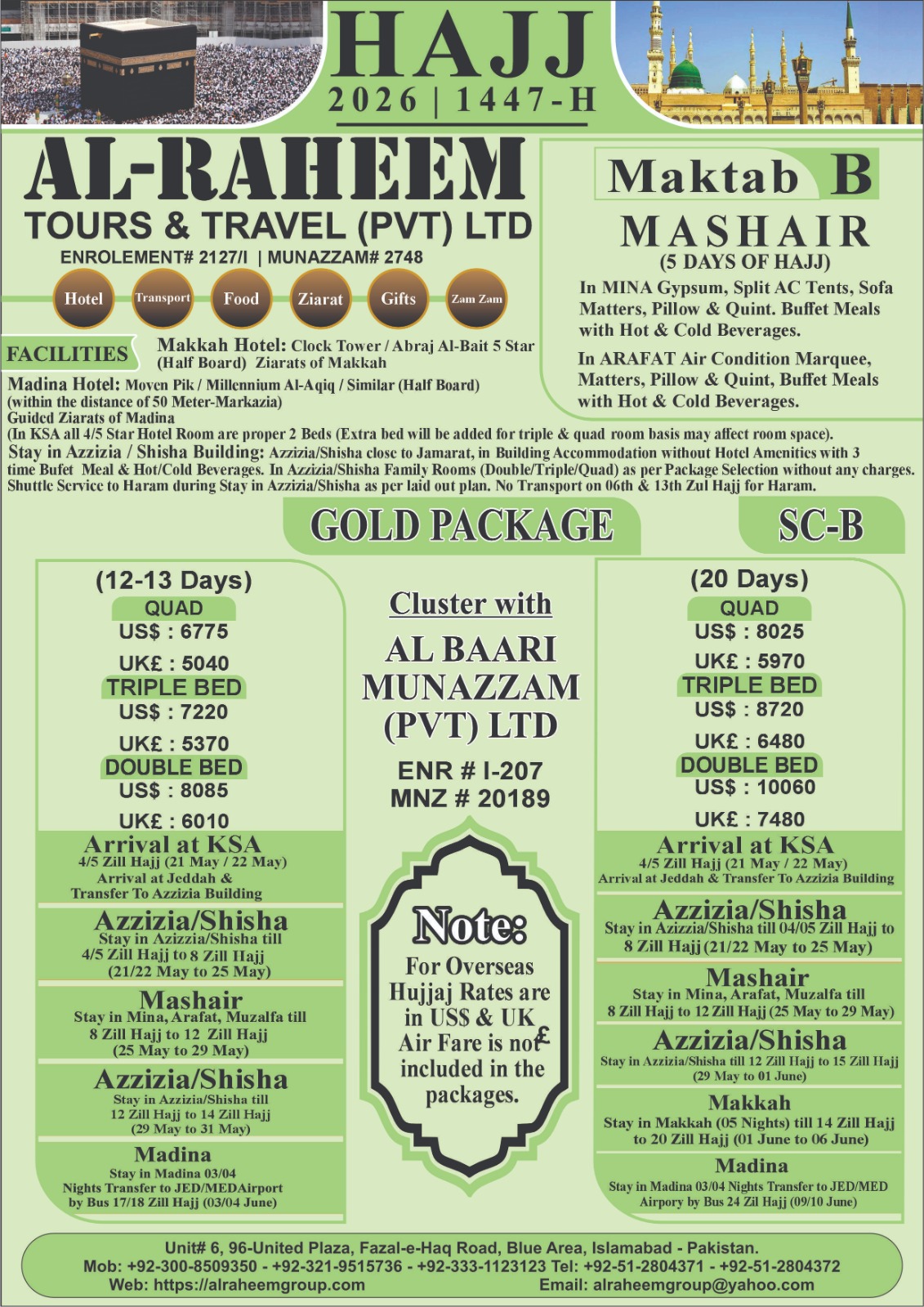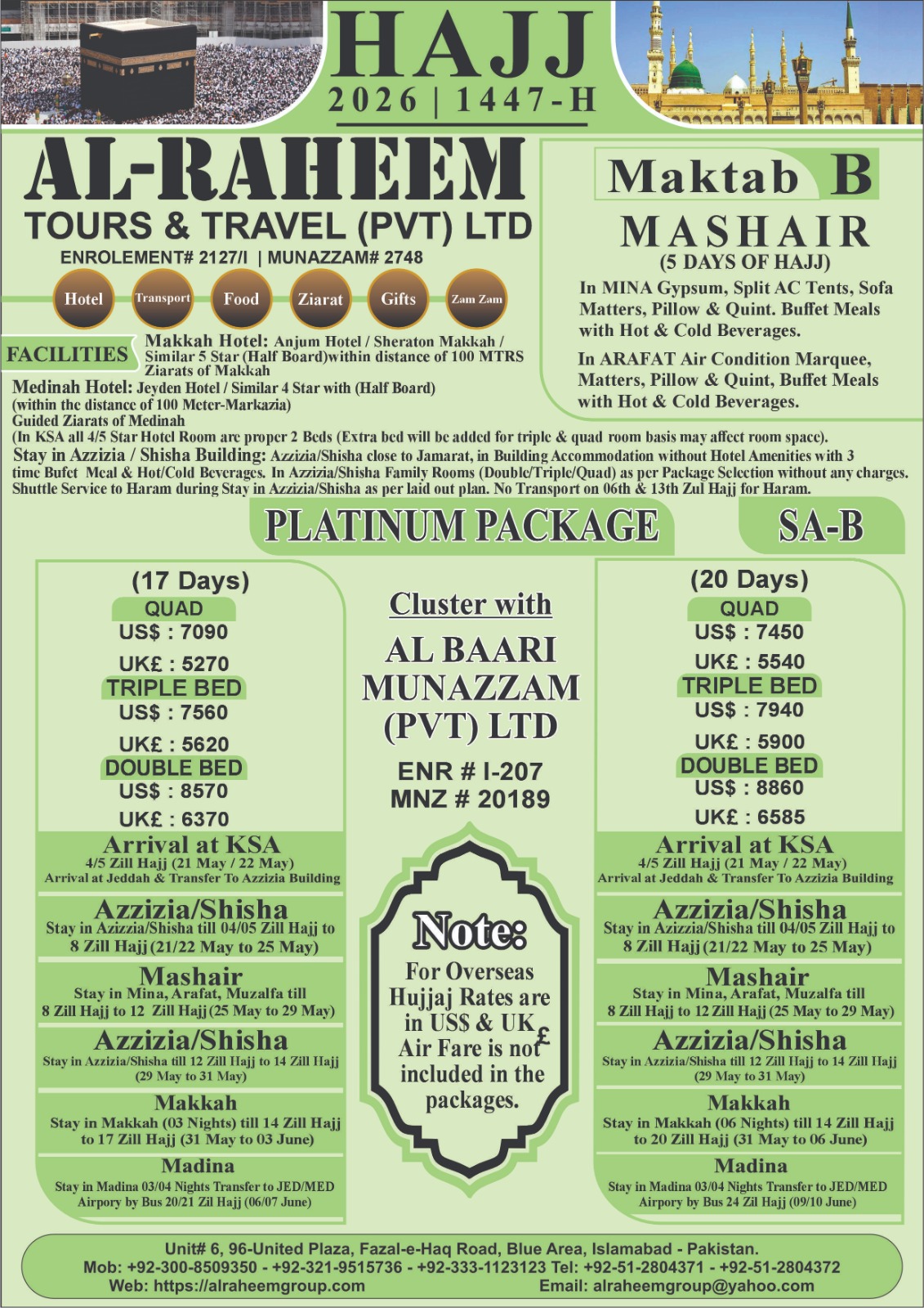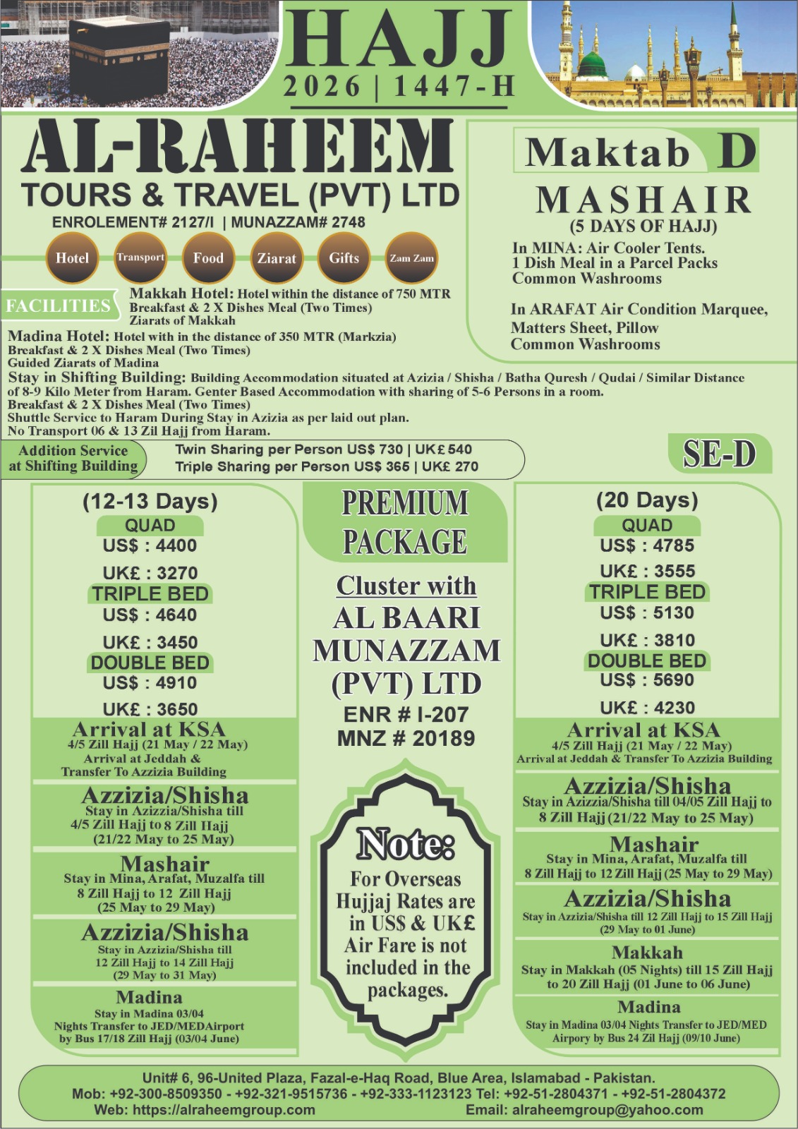 Al Raheem Tours & Travels PVT LTD Best Hajj & Umrah Packages